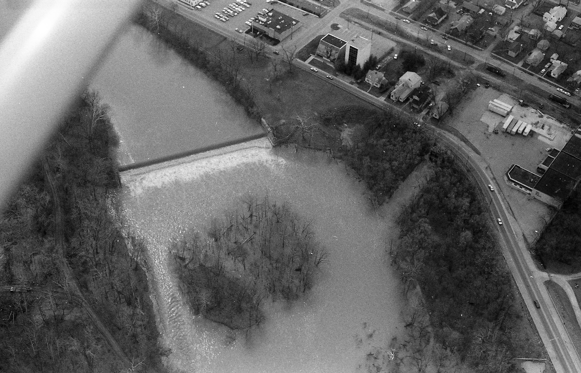 Broad Ripple dam on White River Aerial 1988